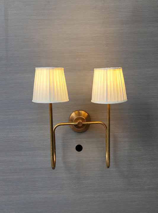 Timeless Elegance Handcrafted Raw Brass 2 Arm Wall Lamp for Distinctive Decor Artisan Lighting Fixture for Your Home Fabric wall fixture