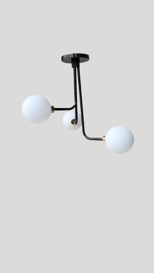 Three Globe Light Stilnovo Style Linear Brass Sputnik Chandelier Sputnik Fixture Milky Globe Flush Mount