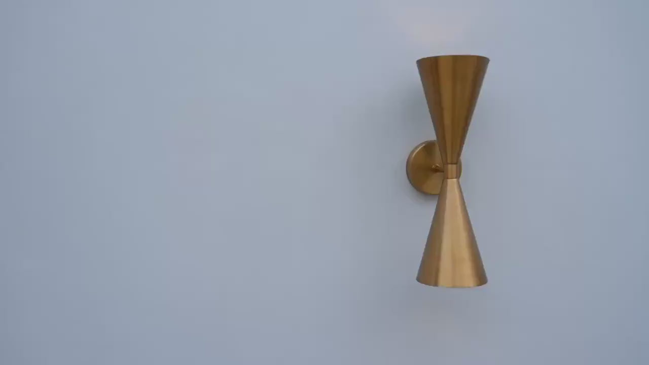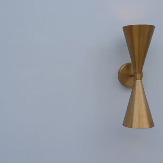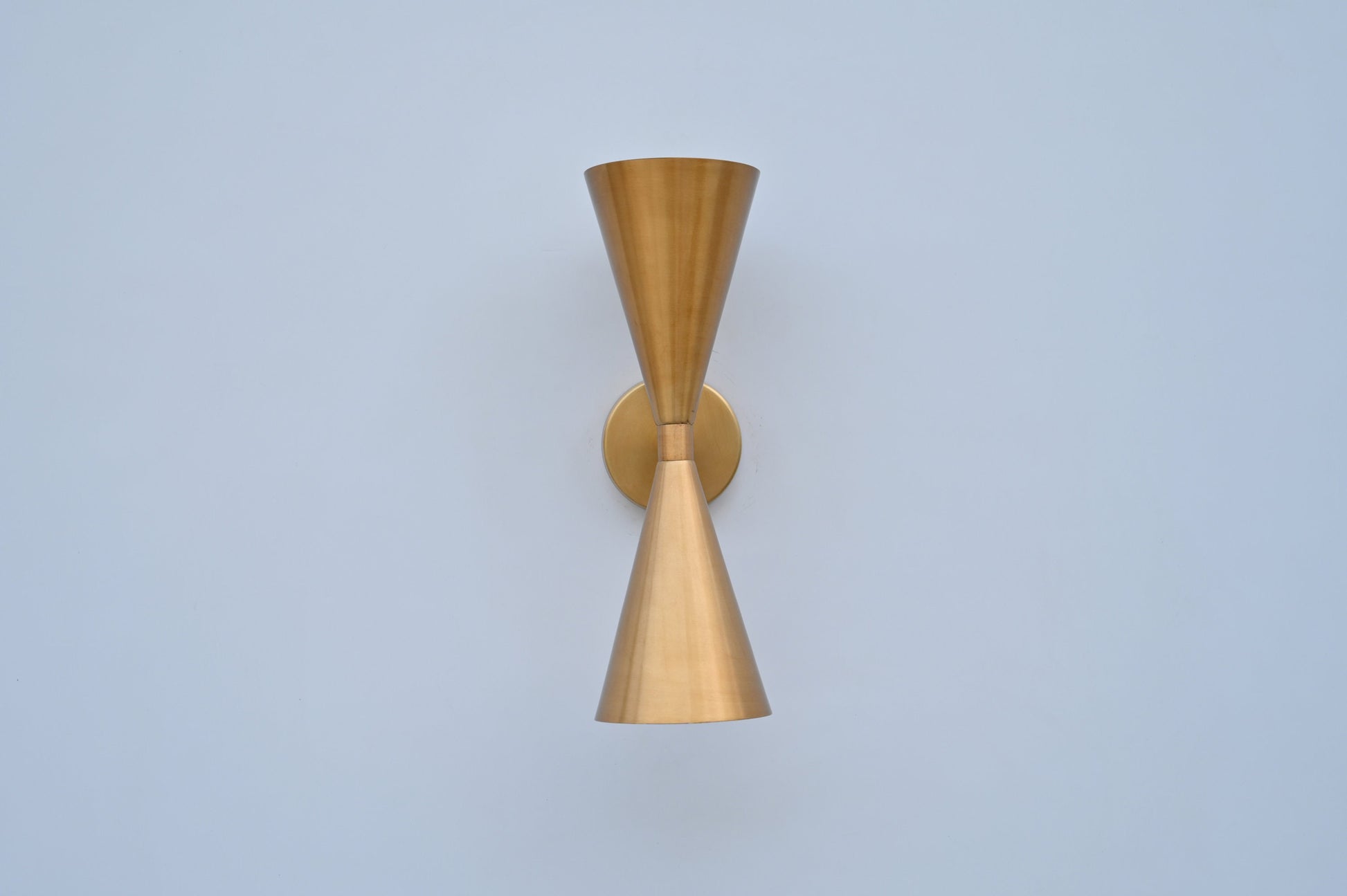 Mid-Century Modern Brass Wall Sconce with Upward and Downward Illumination, Handcrafted Light Ideal for Enhancing Any Interior Space