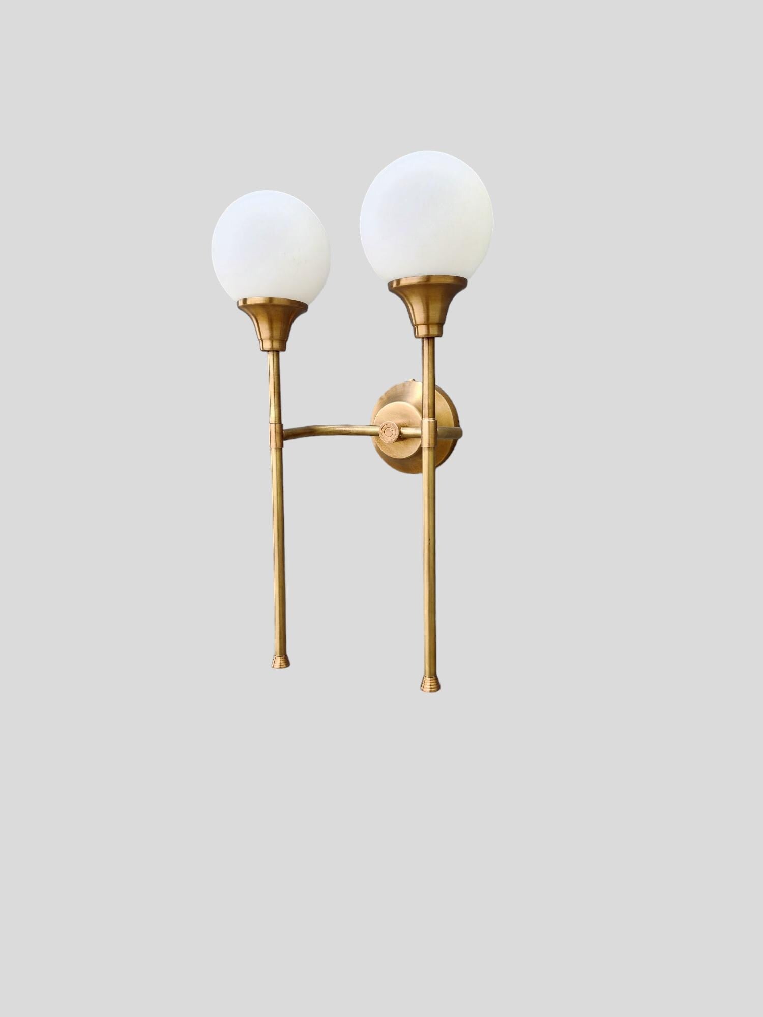 Beautiful Style Double arm brass wall sconce sputnik wall lamp. Made with pure brass material with milky white glass globe shade. Customization of this fixture is available so please contact me if you need any customization.